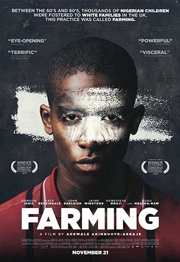 Based on the writer/director's childhood, FARMING tells story of a young Nigerian boy, 'farmed out' by his parents to a white British family in the hope of a better future. Instead, he becomes the feared leader of a white skinhead gang.