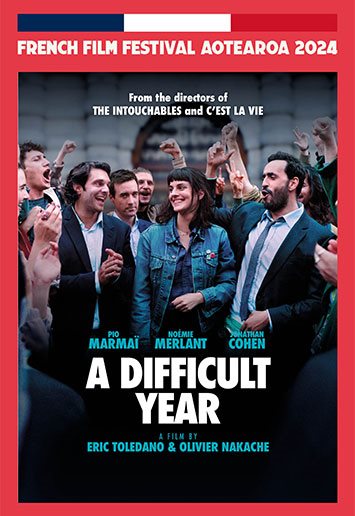 The wildly entertaining new comedy from irrepressible filmmaking duo Éric Toledano and Olivier Nakache (The Intouchables, C'est la vie), A DIFFICULT YEAR stars Pio Marmaï and Jonathan Cohen as two compulsive spenders who get much more than they bargained for when they try and scam their way out of trouble. Both in debt up to their necks, Albert (Marmaï) and Bruno (Cohen) have turned to a community worker (Mathieu Amalric) to try and help get a grip on their lives. However, at one of their group sessions, they stumble into an adjoining meeting room hosting a gathering of young social activists, led by a vivacious organiser (the fabulous Noémie Merlant). Attracted more by the free beer and chips than the group's struggle against consumerism and protection of the environment (whilst acknowledging the hugs are quite nice), Albert and Bruno join the movement without any particular conviction, but soon sense an opportunity... if they don't get arrested first. Expertly poking fun at their characters while simultaneously honouring them, A Difficult Year delivers both laughs and pathos in spades, thanks to the directors' ongoing faith in humanity's desire to change. With of-the-moment resonances to Australia's social and ‘cozzie livs' concerns, A DIFFICULT YEAR is a 2024 Festival must-see.