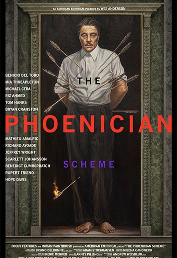 THE PHOENICIAN SCHEME. The story of a family and a family business. Starring: Benicio del Toro as Zsa-zsa Korda, one of the richest men in Europe; Mia Threapleton as Sister Liesl, his daughter/a nun; Michael Cera as Bjorn Lund, their tutor. With: Tom Hanks, Bryan Cranston, Riz Ahmed, Mathieu Amalric, Jeffrey Wright, Scarlett Johansson, Richard Ayoade, Rupert Friend, Hope Davis, and Benedict Cumberbatch.