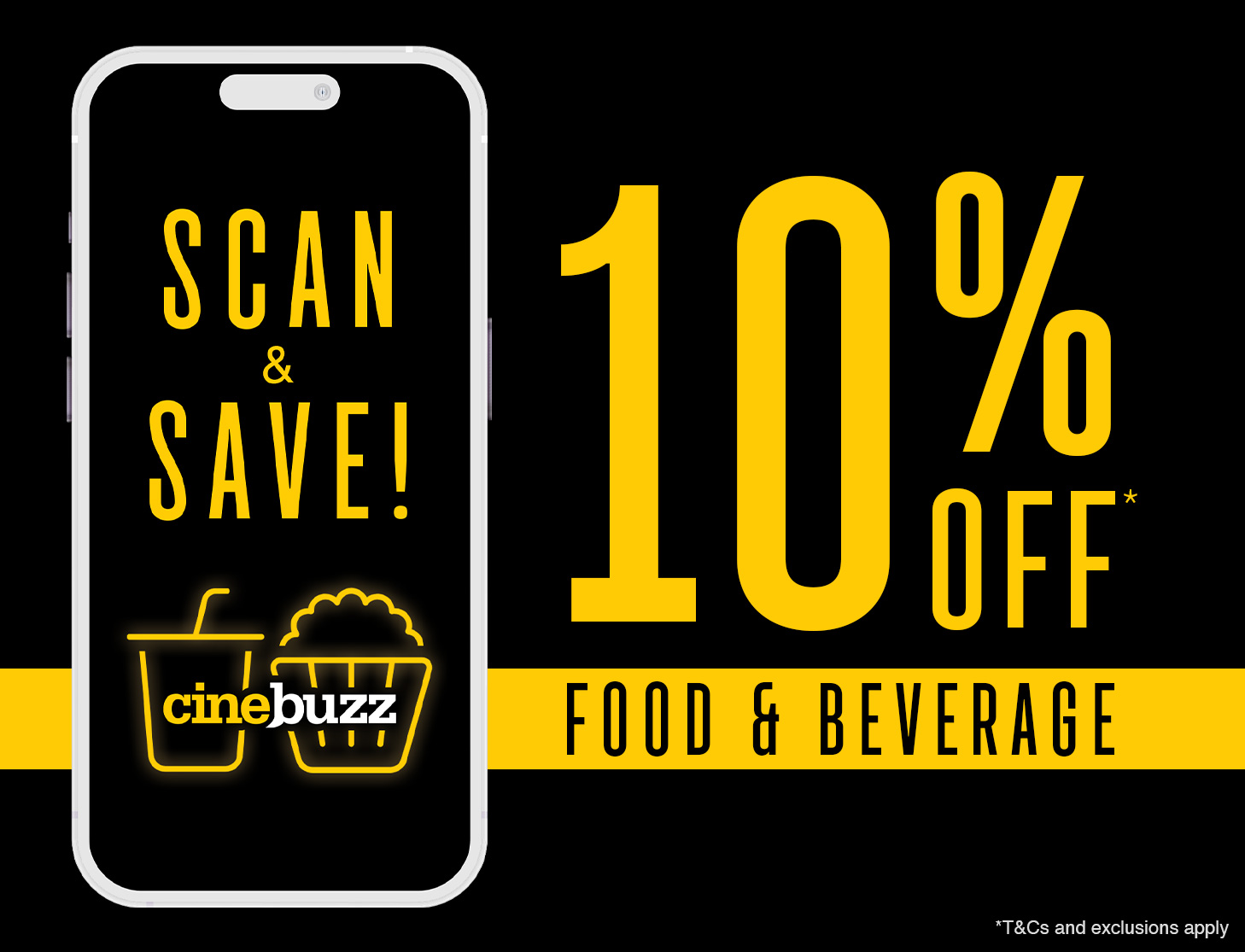 We’re giving our Cinebuzz members 10% off Food and Beverage* in-cinema and online!